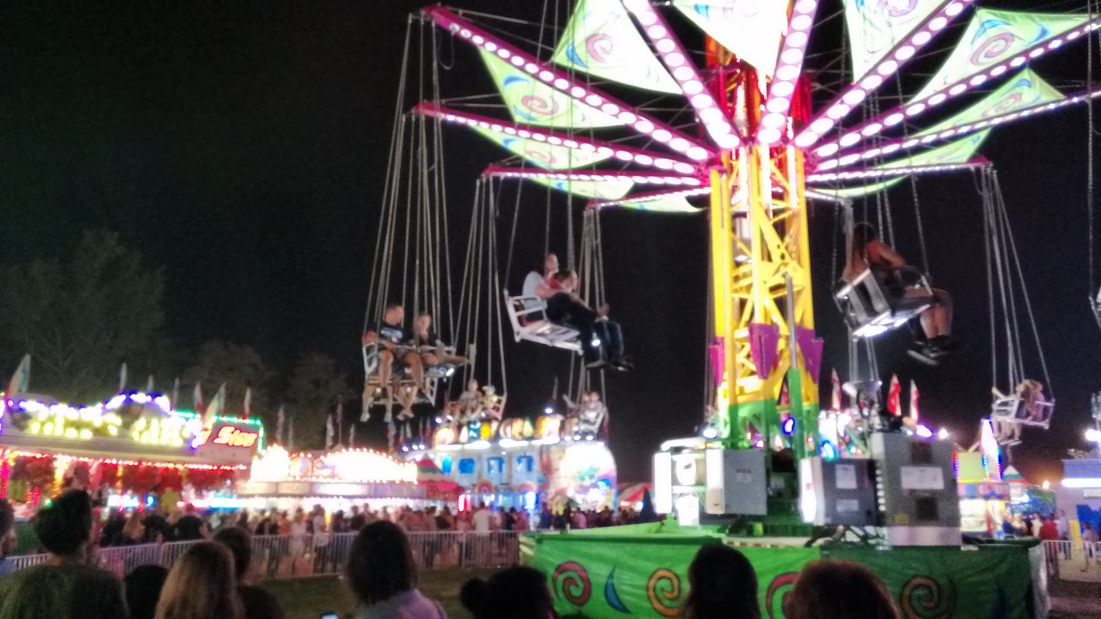 As it grew darker, we walked through the carnival rides. My roommates had brought enough money to go on one ride, but wanted to see them all before they decided where they would spend their tickets. While I was too poor to ride anything myself, I enjoyed trying to photograph the brightly lit rides and games. Some of the photos actually turned out pretty well, considering that I was in a dimly lit field using a cellphone camera.